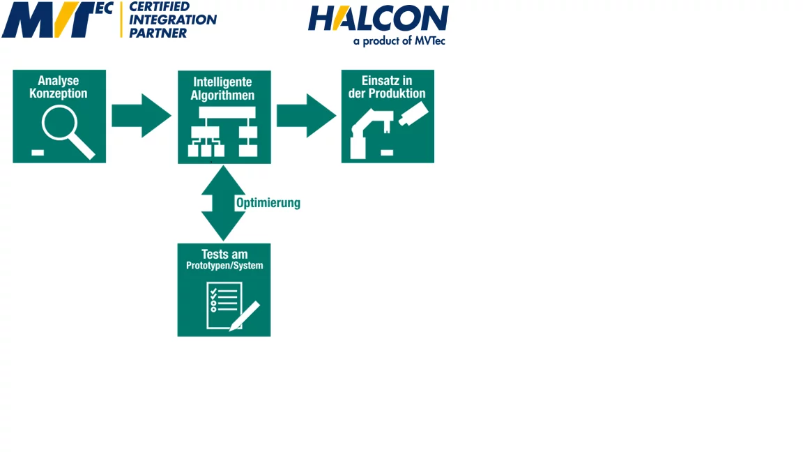 Als echte Profis nutzen wir natürlich nur die beste Software. Halcon von MVTEC ist eine absolut umfassende Bibliothek für die industrielle Bildverarbeitung. Davon profitieren Sie, denn wir sind in der Lage für jede Branche und für eine Vielzahl von Anwendungen in der industriellen Bildverarbeitung eine passende Softwarelösung zu bieten.
